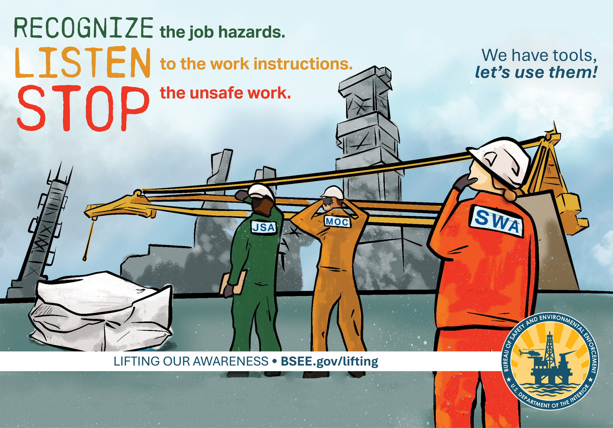 This website will support and broadcast the activities of the Lifting Our Awareness initiative, posting tools and observations developed by the BSEE team, and ideas and successes posted by our public stakeholders and partners with the goal of reducing offshore lifting incidents.