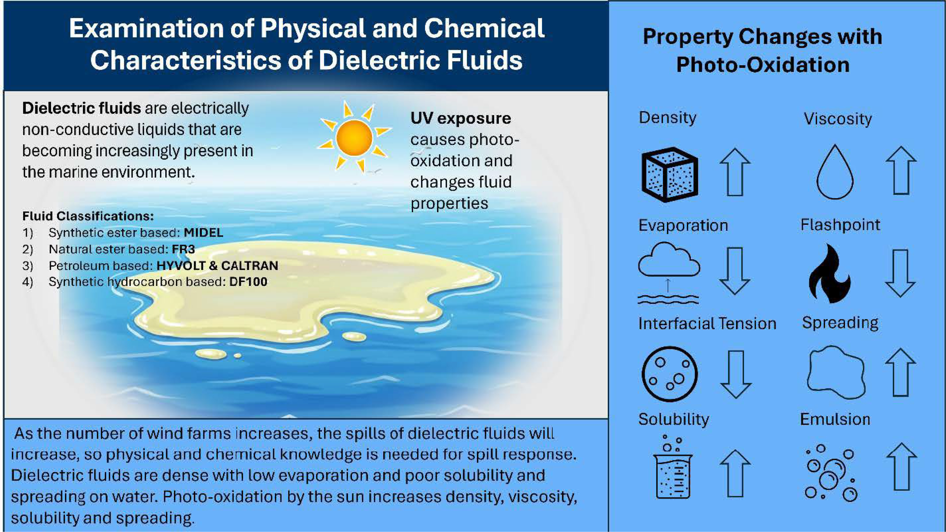 The changes induced by photooxidation indicate that dielectric fluids will respond differently compared to previously studied crude oils or petroleum products. These results demonstrate that dielectric fluids must be modelled with relevant response technologies to gain proper insight into their effectiveness. Further research will provide responders with more accurate decision-making tools to aid in responding to an on-water dielectric fluid spill.