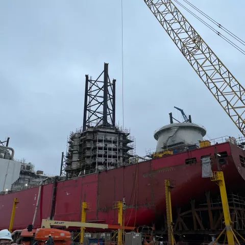 BROWNSVILLE, Texas — Principal Deputy Assistant Secretary for Land and Minerals Management Dr. Steve Feldgus, Bureau of Ocean Energy Management Director Elizabeth Klein and Bureau of Safety and Environmental Enforcement (BSEE) Deputy Director Paul Huang today toured Dominion Energy’s wind turbine installation vessel Charybdis under construction at the Keppel AmFELS shipyard.
